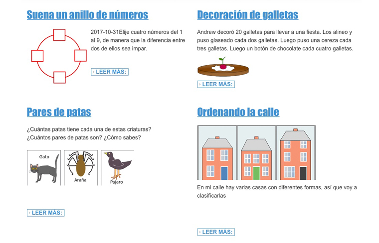 Los materiales, parte del proyecto NRICH de la Universidad de Cambridge, están divididos en tres áreas: “Creadores”, para alumnos de primaria baja; “Inventores”, para los de primaria alta; y “Descubridores”, para estudiantes de secundaria. Además, hay una sección para maestros.