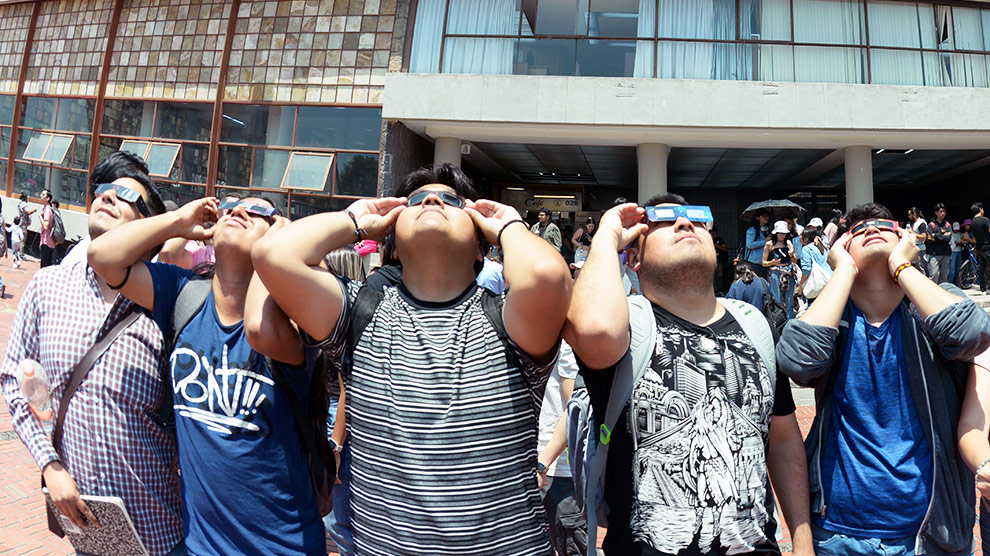 Con el apoyo de las facultades de Ingeniería y de Ciencias, la Escuela Nacional de Lenguas, Lingüística y Traducción, así como de la Dirección General de Divulgación de las Humanidades, se dispusieron decenas de telescopios de alto alcance y se instalaron tendederos con lentes y micas especiales que se prestaron momentáneamente a los visitantes para que miraran de manera segura este fenómeno.