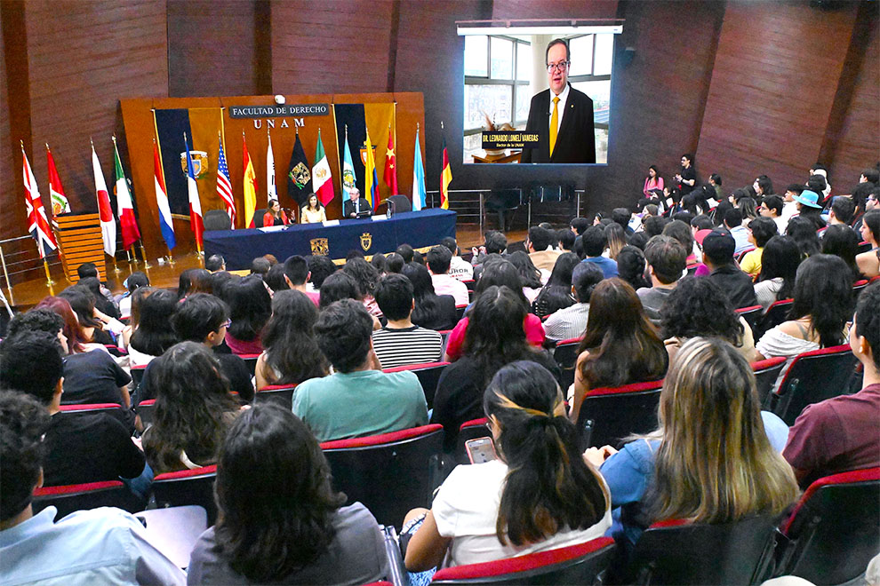 “Estoy seguro de que esta vivencia les permitirá crecer en todos los ámbitos, desafiándolos a explorar nuevas perspectivas y conocimientos”, manifestó en el Auditorio Ius Semper Loquitur de la Facultad de Derecho (FD).